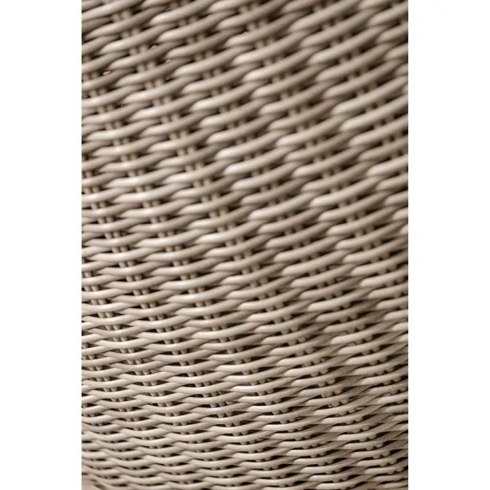 La structure en aluminium robuste recouverte de résine tressée imitation rotin assure une excellente résistance aux intempéries et à l’usure. Ce matériau est particulièrement apprécié pour le mobilier extérieur car il est léger, durable et facile à entretenir.