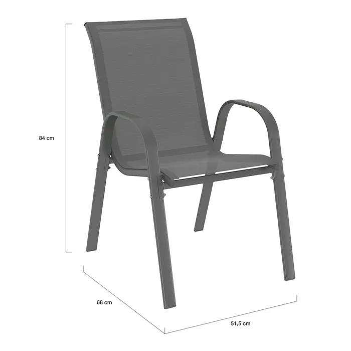 La structure en acier robuste garantit une excellente stabilité et une bonne résistance aux conditions extérieures. Le plateau de table en verre trempé apporte une touche moderne et élégante tout en étant facile à nettoyer après les repas. Les assises et dossiers en textilène respirant offrent un confort agréable et résistent bien aux UV et à l’humidité.
