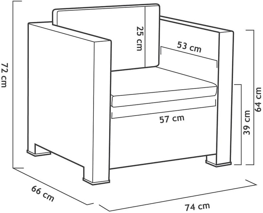 Grâce à sa conception entièrement en résine sans pièces métalliques, ce salon évite les problèmes de corrosion et reste durable dans le temps, même en utilisation prolongée à l’extérieur.